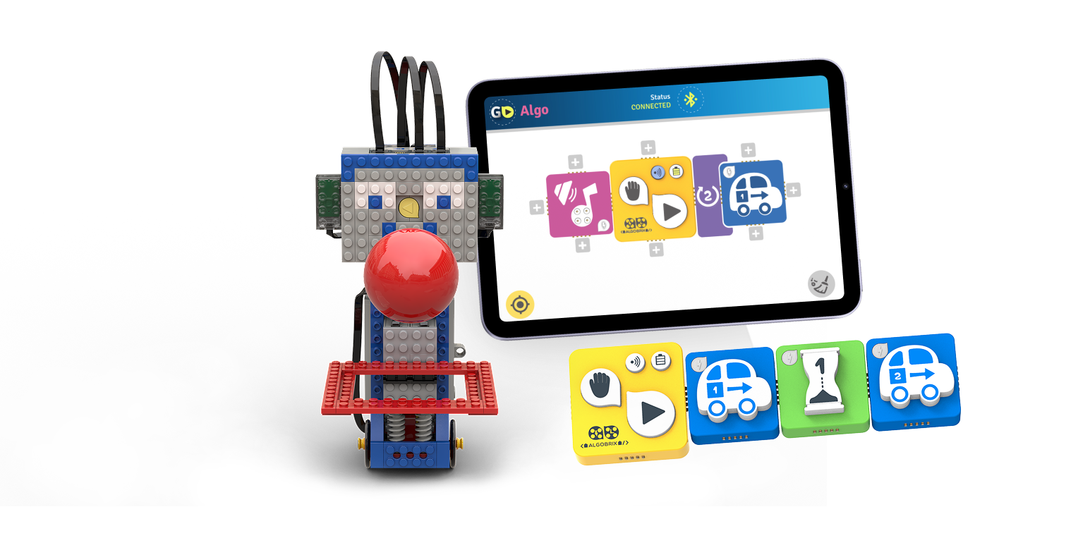 AlgoBuddy est à la fois un programme et un robot destiné aux jeunes programmeurs. Le programme AlgoBuddy offre un cadre unique pour familiariser les jeunes enfants aux fondamentaux de la pensée algorithmique et du langage de programmation. En utilisant le langage de programmation physique intuitif et simple d'Algobrix®, les enfants pratiqueront la programmation en commandant à AlgoBuddy d'effectuer diverses tâches passionnantes basées sur notre vie quotidienne.